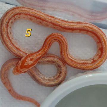 Amel Okeetee Tessera Het Sun-kissed. This baby has eaten 6 meals and is taking a thawed and warmed pinky mouse from tongs.